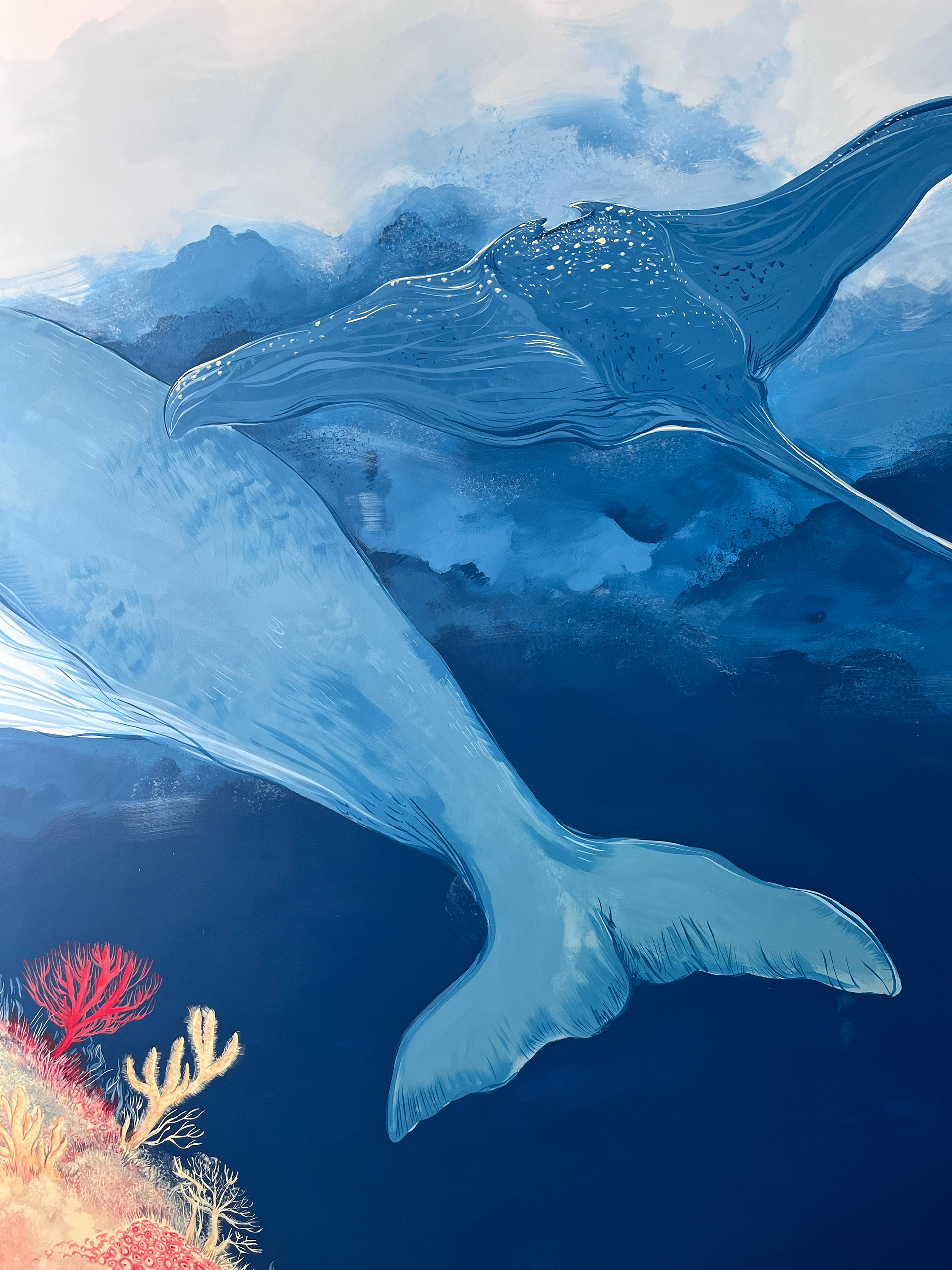 Projet résidentiel, Univers sous-marin pour une chambre d'enfant, bercé par les flots, les ondulation des coraux et le champ des baleines. Une création sur mesure, pour un couple passionné de biologie marine.